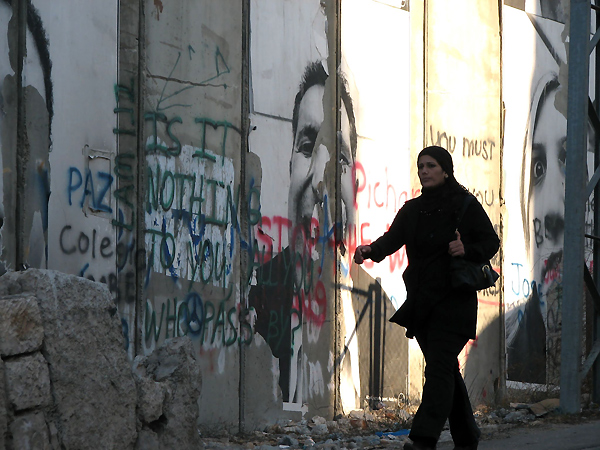 ▲ 팔레스타인을 옥죄는 분리장벽을 걷고 있는 베들레헴 여성. 유대인에게는 안전장치일 수 있지만, 팔레스타인에게는 출구 없는 수용소. (사진제공 김동문)
