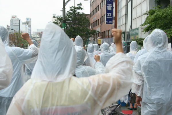 그는 오후 3시쯤 자리에서 일어났다. 4시에 재판이 있다고 했다. 그때까지도 굵은 빗줄기는 땅을 적시고 있었다. 그를 배웅하고 자리를 정리하려고 다시 카페에 돌아와 앉았는데, 문득 이들의 싸움이 그치지 않는 비와 닮았다는 생각이 들었다. 이들의 싸움은 그치지 않는다. 그칠 줄 모른다. 그래서 오늘도 이들은 거리에서 천막에서 투쟁한다. 그러나 이제 그만 이 비가 그쳤으면 좋겠다. 이 빗줄기, 그들의 가슴에 그만 들이쳤으면 좋겠다.