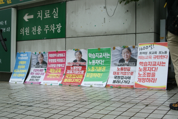 우리는 해고를 당해도 부당 해고 자체가 성립이 안 된다. 해고가 아니라 계약이 해지됐다는 거다. 5년간 노조 탄압을 받았는데, 정규직이라면 고용노동부(노동부) 노동위원회에 제소할 수 있지만, 노동부는 너희는 개인 사업자니까 민사소송을 하라는 거다. 금융권에서도 자영업자로 취급받아 대출도 잘 못 받는다. 그런데 이게 처음부터 그런 게 아니다. 1999년에 처음 노조 설립 필증 받았을 때는 노동부에서 근로 감독도 나왔고 우리가 파업하면 노동쟁의 조정도 거쳤다. 그러고 보면 노동 3권은 보장받았던 거다. 그런데 그 사이에 현행법은 바뀌지도 않았는데 노조가 힘이 없어지니까 아무런 권리 행사를 못하게 됐다. 사측에서 “학습지 노조는 법이 정한 조합에 해당되지 않는다”는 2005년 대법원 판례를 들며 노조를 인정하지 않는 데 대해, 노동부는 자기들이 노조 설립 필증 내 줬으면서 도리어 우리에게 대법원을 상대로 싸우라고 한다.