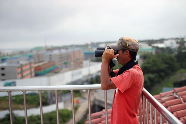 아침에 일어나면 건설 현장이 가장 잘 보이는 건물 옥상에 가서 사진 촬영을 한다. 유심히 봐야 할 곳은 쌍안경으로 본다. 공사 현장을 여러 각도로 보기 위해 들리는 거점들이 있다. 소나무 위에도 매일 오르내려 송진이 옷에 자주 묻는다. 하루 두세 번씩, 공사장을 감시하는 게 일이다. 자료를 차곡차곡 모으고 있다. 종종 먼지가 많이 날리거나 소음이 심하다는 민원을 넣어 귀찮게 하기도 하고. 저들이 제일 번거로워하는 게 민원에 따른 관공서 직원들의 방문이다.