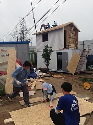 7월 21일~25일까지(4박 5일)의 이번 순례에서 70여 명의 참가자들은 농사 지원 활동, 해상 감시 활동 등 다양한 방법으로 평화활동을 지원한다. 가장 중점을 둔 활동은 ‘평화의 집짓기’다. 평화활동가들의 장기적인 활동을 위한 근거지를 마련해주기 위함이다. 이를 위해서 참가 단체들은 건축비를 마련하고자 사전에 후원콘서트를 여는 등 힘을 모았었다. ‘평화의 집짓기’ 실무를 담당한 조윤하 기독청년아카데미 사무국장으로부터 들은 이야기다. “처음 계획은 컨테이너 주택 한 채에 600만 원 예산을 잡았었어요. 하지만 현장에서 활동가들이 필요로 하는 집의 수요가 많다는 말을 송강호 박사님으로부터 전해 듣고, 1층 컨테이너주택 위에 올릴 경량목구조주택을 한 채 더 짓기로 한 거죠. 정확한 결산은 내봐야 알겠지만, 자재를 아끼고 아껴 총 두 채에 약 750만 원이 들었습니다.”