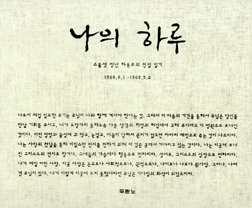가식 없던 스물셋 ‘청년 하용조’가 그 무렵 쓴 영성 일기로, 폐병으로 피를 쏟으며 외딴 병원에 입원한 날로부터 9개월간에 걸쳐 써내려간 가장 진솔한 고백록이다. 삶과 죽음, 믿음과 실천, 사랑과 용서, 전도와 선교, 공동체와 자기 정체성 등 저자의 신앙의 총체적 과정이 집약돼 있다.