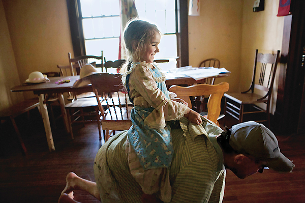 | ▲ 공동체 식당에서 아빠 등에 타고 있는 필자의 딸. 즐거움을 나누고 축하하는 일은 삶에 대한 감사의 표현으로 공동체 비전의 아주 중요한 부분이다. (사진: Katie Currid 제공) | ||