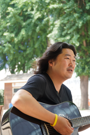 | ▲ 얼마 전에 삼성 해고노동자 김용희 씨가 철탑에 올라 농성하시던 강남역 사거리에서 노래를 했었는데요. 그곳에서 연대하시던 노동자분께서 제게 이런 이야기를 해주셨어요. “장현호 동지, 노래하러 오신 거죠? 장현호 동지가 <75미터 위>를 만들고 불러주셔서 파인텍 투쟁이 승리했어요. 장현호 동지가 강남역에서 노래하시면 여기도 승리할 것 같아요.” 그렇게 서로 응원해줄 수 있는 노래가 남는다는 건 정말 보람된 일입니다. ⓒ복음과상황 정민호 | ||