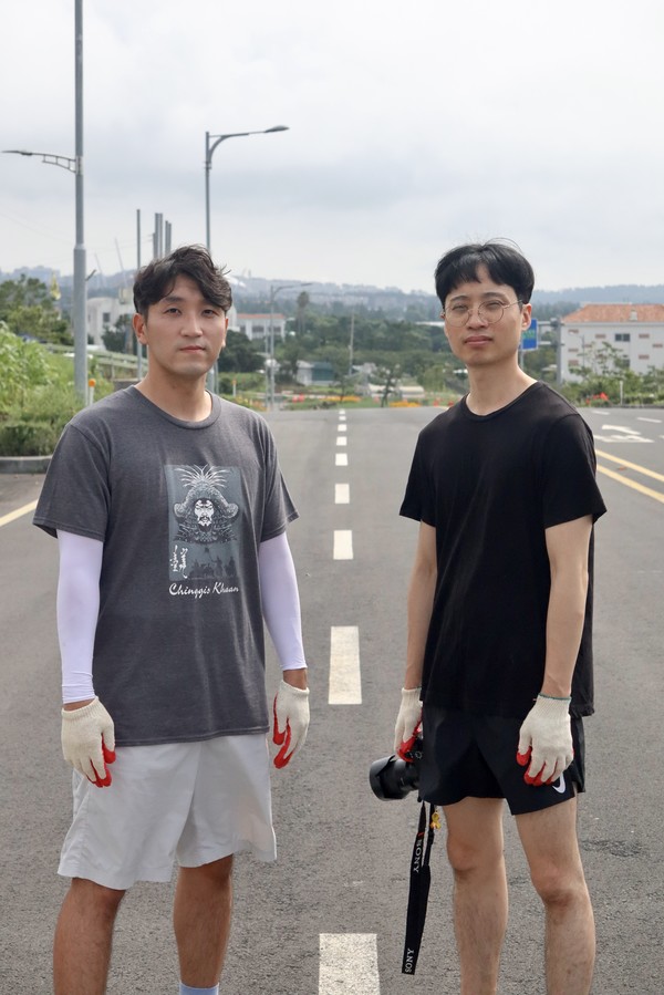 이명훈(이하 ‘명훈’): 이전에 강정을 방문했을 때는 영화 관련 워크샵에 참여했다. 마을 곳곳에 보이던 평화에 대한 문구들, 강정을 넘어 동아시아의 평화를 걱정하는 모습들이 인상적이었다. 특히 오키나와 미군기지 반대운동을 다룬 다큐멘터리를 상영한 일, 일상에서부터 평화를 실천하려는 친구들의 모습이 기억난다. 이번에는 연대활동 차원에서 왔다. 기지가 들어서고도 지속할 수 있는 평화운동이 어떤 모습인지 궁금했다.