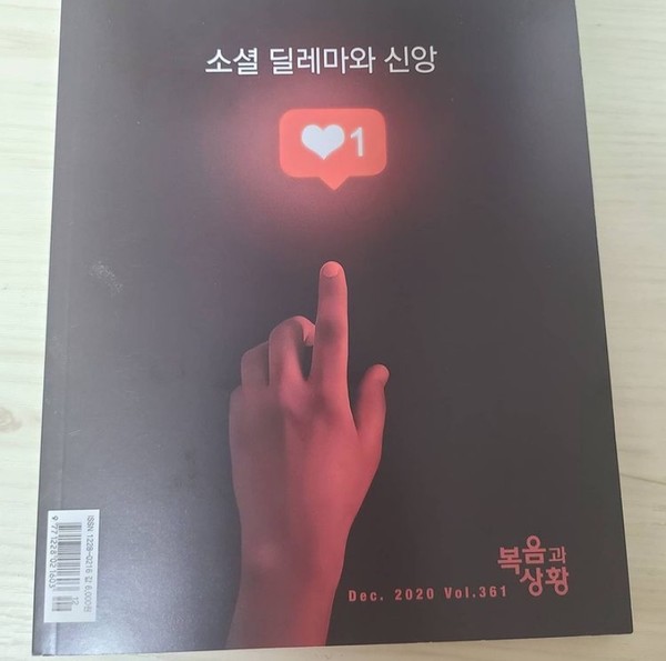 이번호의 주제는 'SNS', 초반 기독교인 택배기사분의 이야기로 시작하여 소셜 네트워크에 대해 짚어보는 이번 기사는 ‘온라인 관계망’에 대해 깊게 생각해 볼 수 있어서 좋았다 … 코로나로 인해 ‘언택트’가 필수적인 요즘.. 기독교 역시 SNS를 어떻게 긍정적으로 사용할 수 있을지 깊이 고민해보는 것도 중요하겠지?