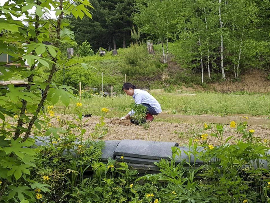 공동경작을 시작한 계기도 함께 읽은 책이었어요. 특히 세상을 먹여 살리는 소농과 씨앗, 여성 농민의 중요성을 보여준 환경 사상가 반다나 시바의 영향이 컸어요. 종 다양성을 확보하기 위해 소농이 중요하다는 점을 책을 통해 알게 되었는데, 인제에서 빈 땅 찾기는 쉬우니 한번 해보자고 한 거죠. 채종부터 파종까지 제대로 농사를 지어본 멤버들은 별로 없었거든요. 다행히 멤버 중에 토종 농사에 신념이 있는 ‘씨앗 선생님’이 계셔서 많은 도움을 받았어요. 함께 텃밭 정원을 설계하고 씨앗을 나눠 모종을 내고, 돌보고, 수확한 작물을 나누었고요. 채종한 토종 씨앗은 관행대로 빌려온 곳에 두 배로 돌려줬어요. 그게 소중한 씨앗을 지키는 방법이라는 것도 알게 되었지요.