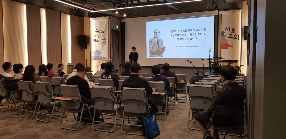 첫 강연자로 선 최종원 교수는 ‘대화의 시작’이라는 주제에 맞춰 문해력의 중요성을 강조했다. 최 교수는 ‘읽기’는 주체적으로 무엇인가를 마주하는 결단이 필요한 행위로, 작지만 나아갈 방향을 제시할 수 있는 힘이 있다고 설명했다. 그는 개신교가 읽는다는 것을 통해 태어난 종교임에도 한국교회와 그리스도인들은 여전히 좋은 설교를 ‘듣고’ ‘아멘’하는 데 머물러있다고 지적했다. 우리가 주체적 읽기를 통해 책임을 지는 행위로 나아가고 있는지 돌아봐야 한다고 덧붙였다.