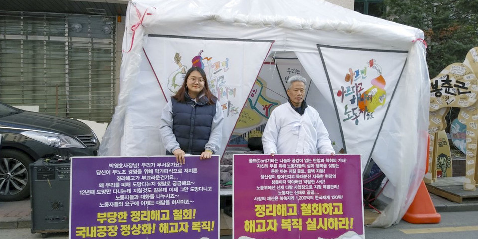 누구나 ‘처음’은 쉽게 잊지 못하잖아요. 인권활동가를 업으로 삼은 제 ‘처음’은 2018년 파인텍 굴뚝 아래와 콜텍 끝장투쟁 농성장이었습니다. 파인텍 노동자들 이야기를 다음 스토리펀딩에 연재했던 학교 조교님과 현장심방 프로그램 ‘발바닥으로 읽는 성서’를 진행하는 영등포산업선교회의 영향으로 그곳을 알게 되었습니다. 투쟁 현장을 알게 된 후 저는 가만히 있을 수 없었어요. 휴학하고 매일같이 그곳을 찾아갔습니다. 투쟁이 무엇인지, 연대가 무엇인지 뚜렷하게 알지 못했지만, 자기 존엄을 지키기 위해 투쟁하는 이들의 모습은 저를 계속 움직이게 했습니다.
