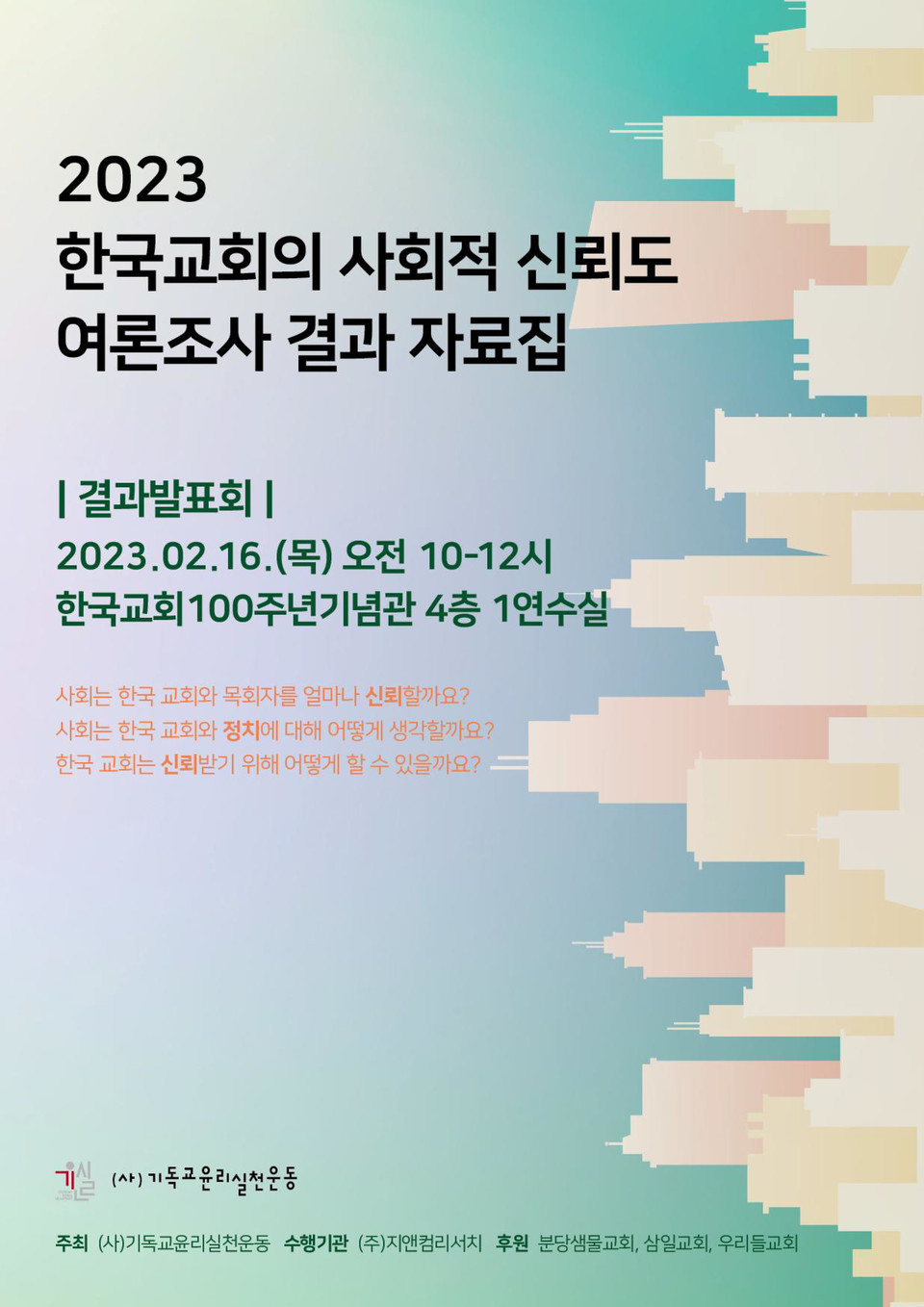 *이 글은 2023년 2월 16일 기윤실이 발표한 〈2023년 한국교회의 사회적 신뢰도 여론조사 결과 자료집〉에 실린 ‘우리의 믿음을 넘어, 우리를 향한 믿음으로’를 수정·보완한 것이다. 자료집은 기윤실 홈페이지에서 내려받을 수 있다.