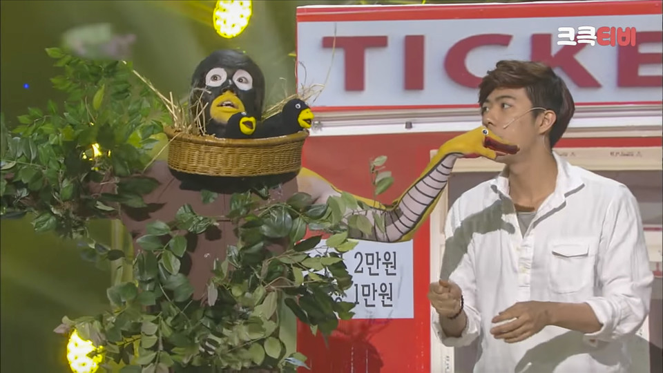 하나 꼽으라면 ‘대학로 로맨스’라는 코너를 할 때 분장을 굉장히 많이 했거든. 허안나, 서태훈이 연인으로 나오고, 내가 삼각관계 만드는 콘셉트였지. 내 코너도 아니었는데, 원래 역할을 했던 배우가 너무 바쁘다고 해서 하게 된 거였어. 그때 힘들기도 했지. 한번은 나무 분장을 하는데, 공연 전 옷에서 나뭇잎이 다 떨어진 거야. 무대에 바로 올라가야 하는데 어떻게 해. 옷 입은 채로 뜨거운 글루건 이용해서 나뭇잎 하나하나 붙였지. 화상 직전까지 갔을 거야 아마. 아무튼 그 코너 할 때, 관객들이 많이 웃었어. 특히 아기차에서 아기 분장하고 나왔을 때는 관객이 너무 웃어서 한 20초 정도 기다렸다가 대사를 해야 할 정도였어. 뿌듯하지, 그러면.