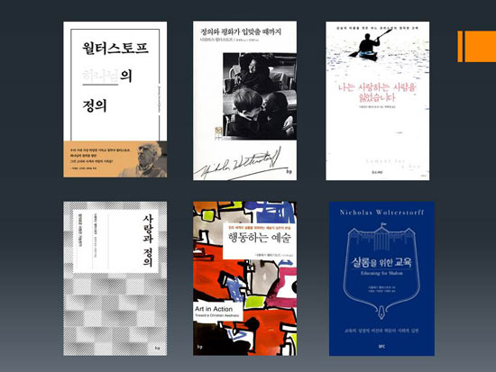 서둘러 그의 최근 저서를 구해놓고 다른 일정 때문에 미처 읽지 못하다가 학회 전날 책을 집어들었다. 이번 학회의 주제는 ‘정의와 사랑’이었고, 맞춤하게 내가 집어든 책은 미국 베이커출판사(Baker Academics)가 2013년에 출간한 《Journey Toward Justice》(한국어판은 2017년에 복있는사람이 펴낸 《월터스토프 하나님의 정의》)였다. 일반 독자들을 위해 전문적인 철학적 논의는 배제하고 가능한 쉽게 개인의 경험을 곁들여 쓴 책이다. 그렇다고 또 마냥 술술 읽히는 책은 아니다. 그런데 맙소사, 몇 십 페이지도 채 읽지 않았는데 눈물이 줄줄 흐르는 게 아닌가. 그렇게 시작한 눈물은 멈추질 않았고 그 상태로 나는 새벽 한 시까지 그 책을 읽었다. 아마도 나는 인간에 대한 진지한 존중을 바탕으로 정의에 대한 이야기를 이끌어가는 그의 방식에 깊이 매료되었던 것 같다.
