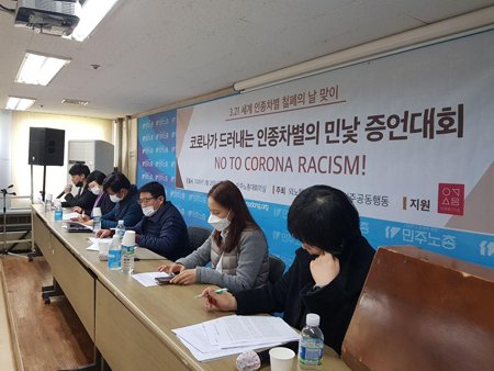 | ▲ 세계 인종차별 철폐의 날을 맞아 ‘코로나가 드러내는 인종차별의 민낯 증언대회’가 열렸다. (사진: 이주공동행동 제공) |