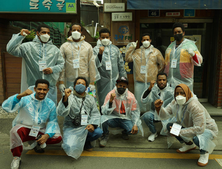 | ▲ 에티오피아 난민공동체원들이 마을 방역에 자원봉사로 참여했다. (이하 사진: 에티오피아 난민공동체 구성원 제공) |
